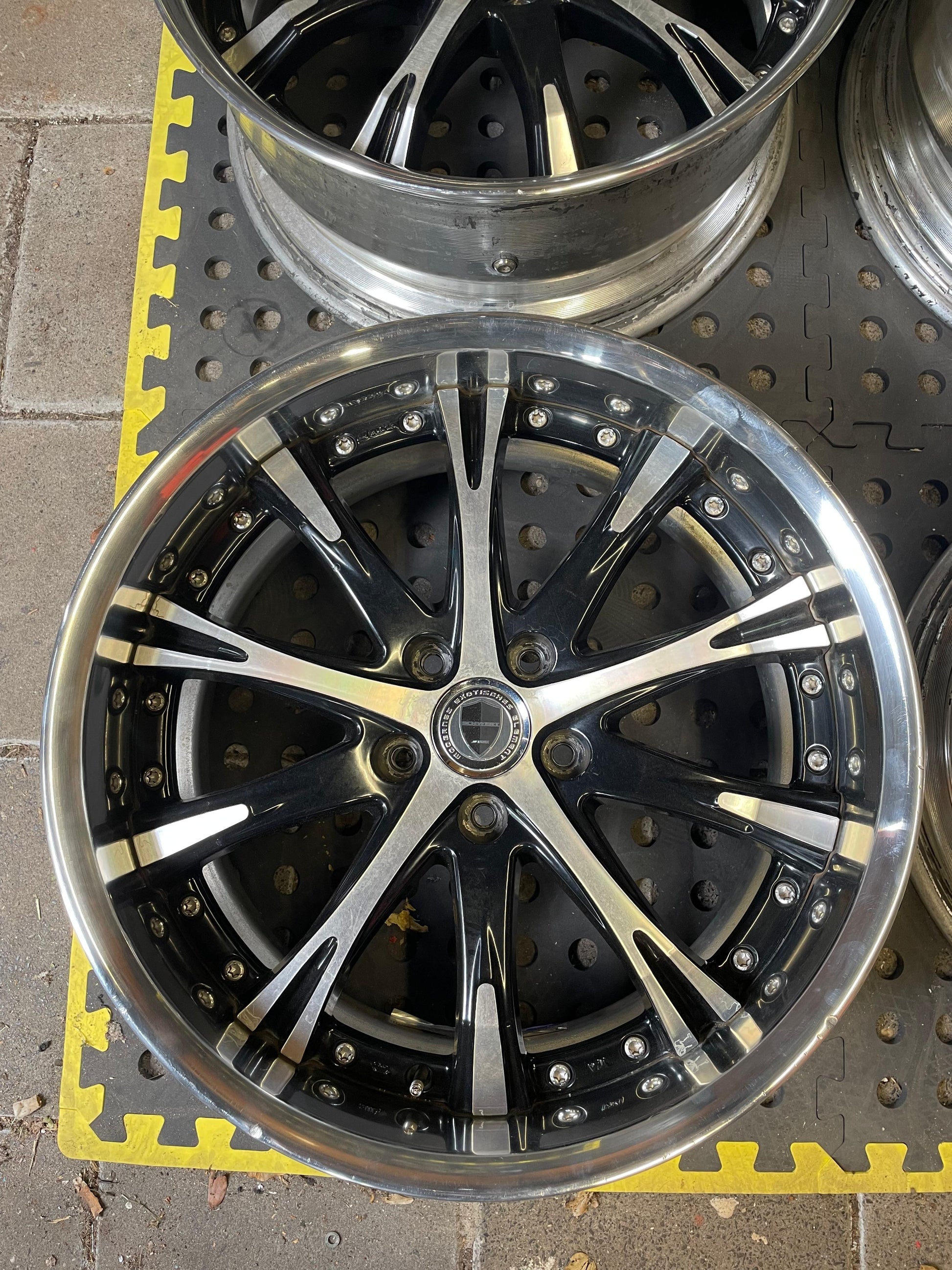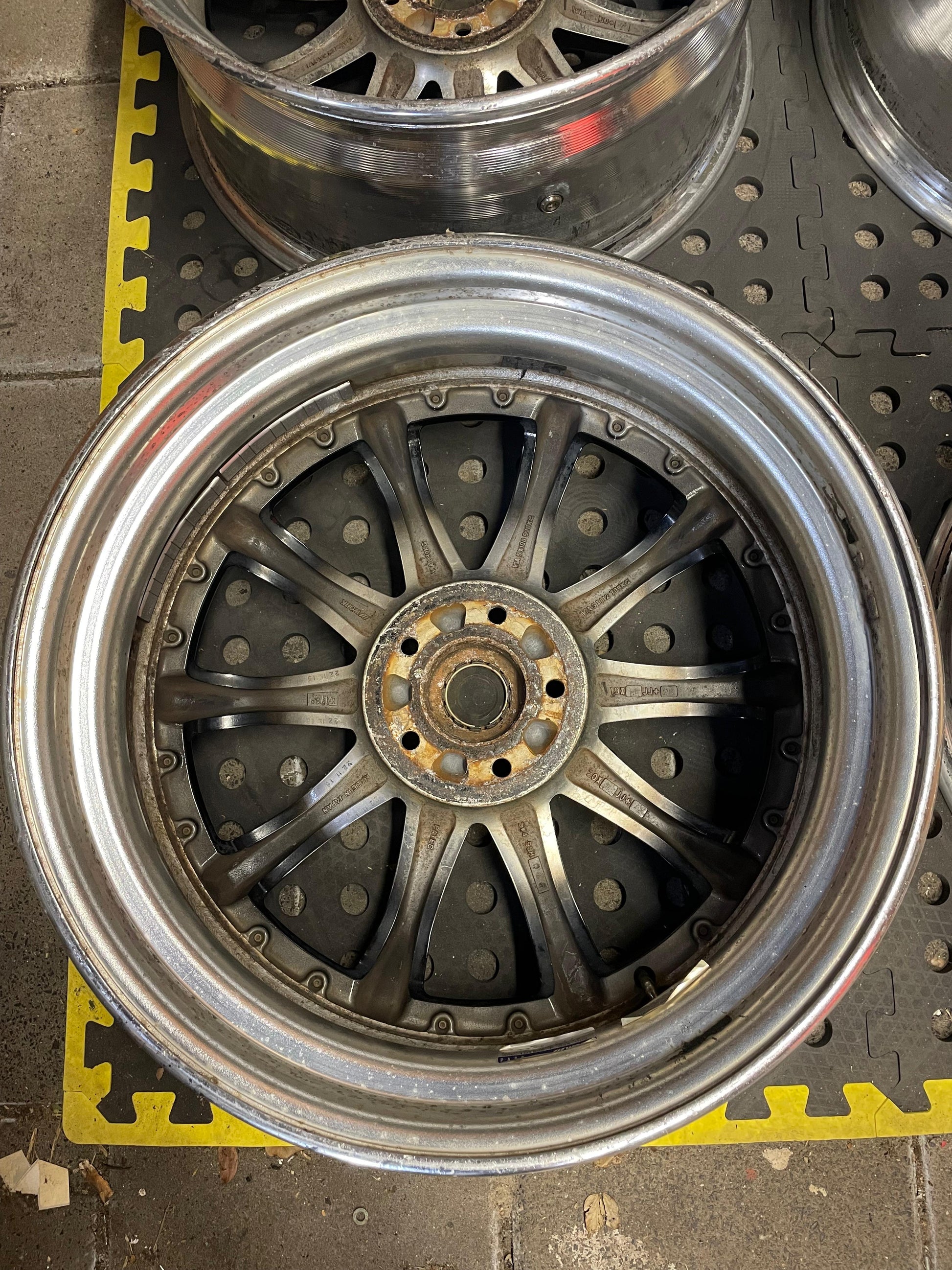 A set of authentic Work Schwert SC4 wheels. A refined multi-spoke design with a luxury JDM touch, perfect for VIP and stance builds.